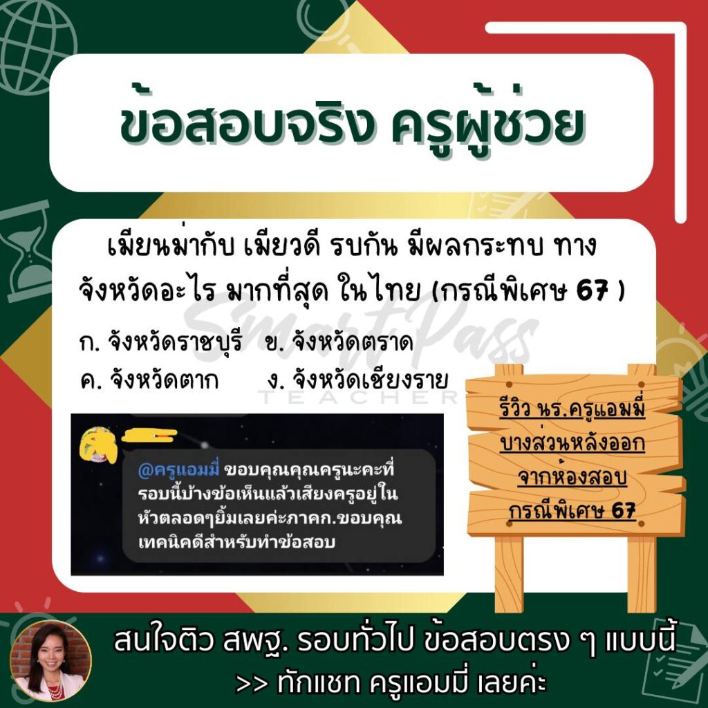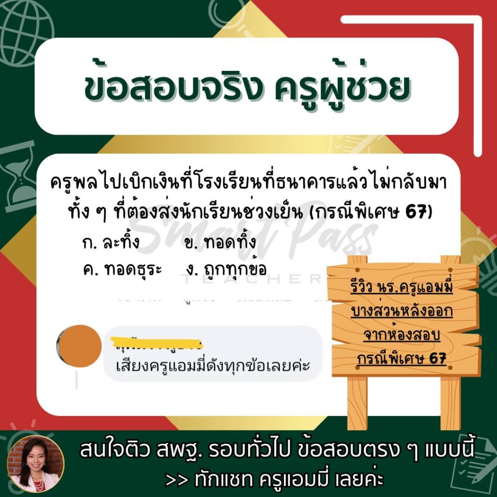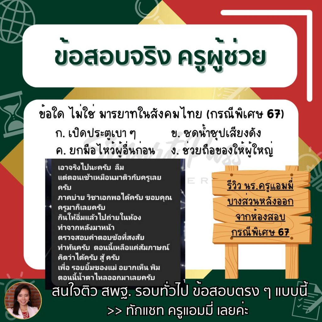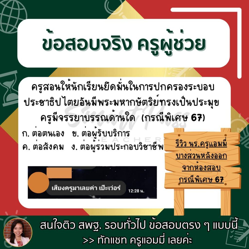 ข้อสอบจริง #สอบครูผู้ช่วย กรณีพิเศษ ปี 67 – 68