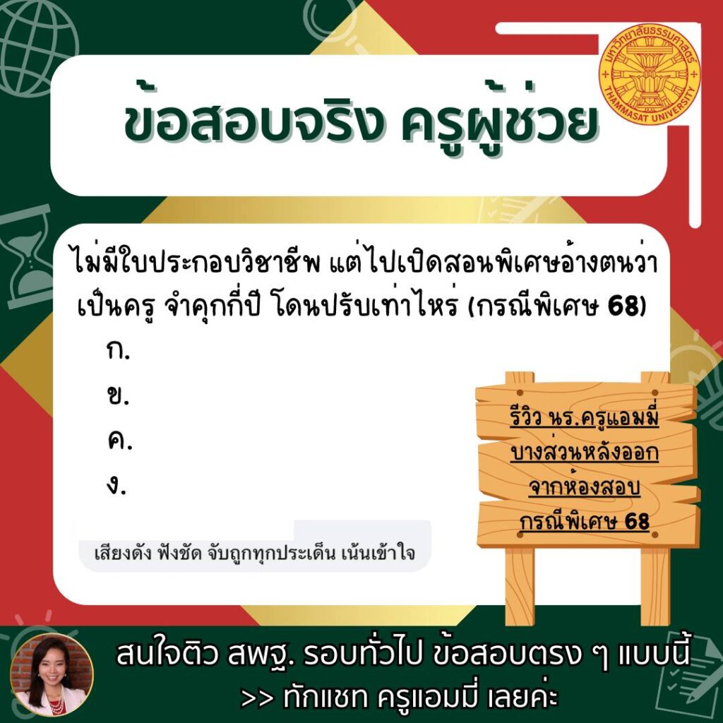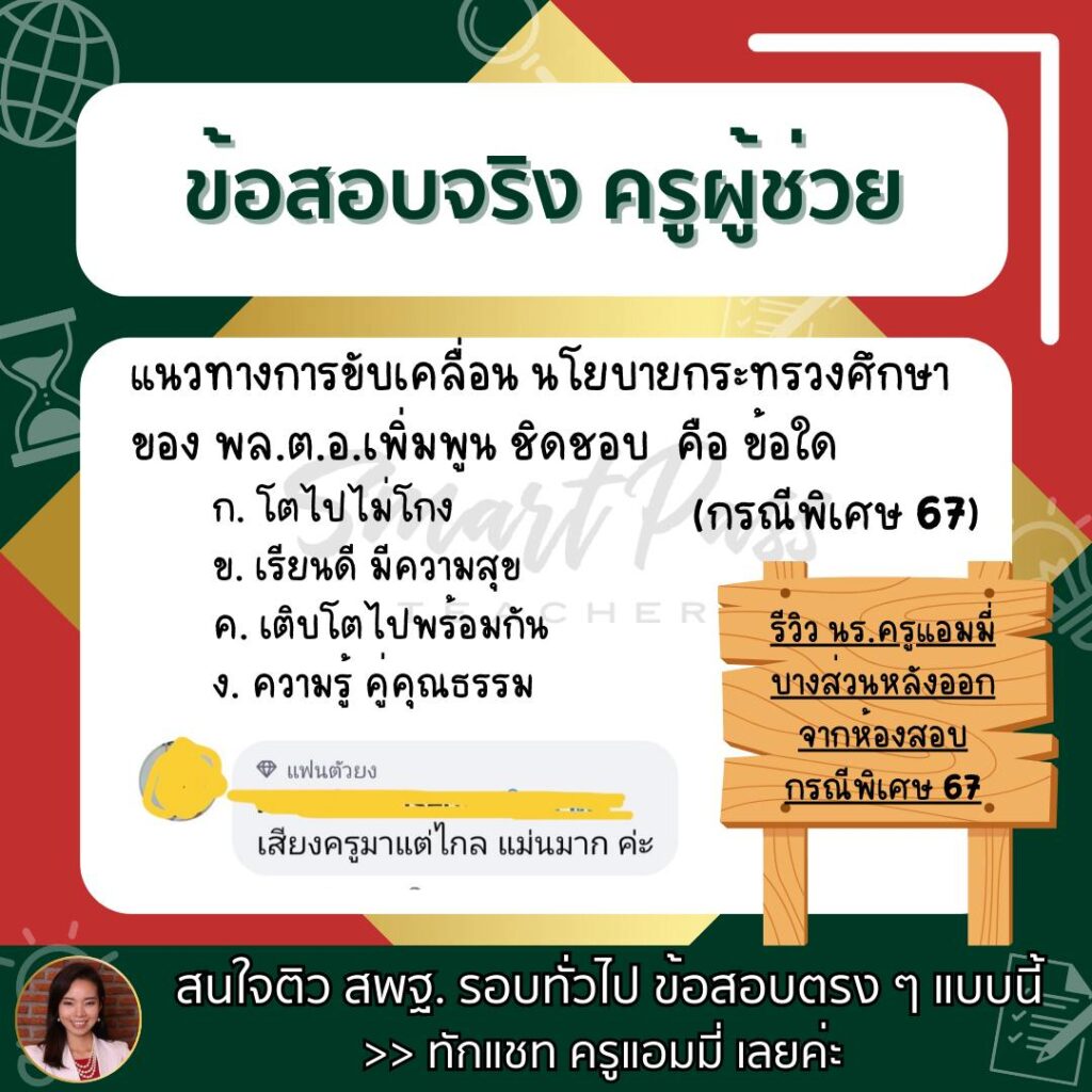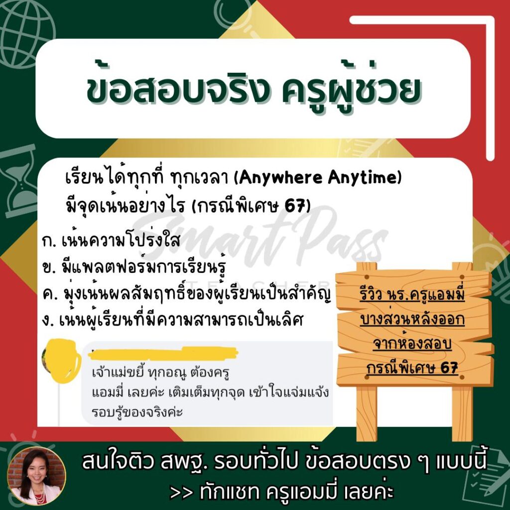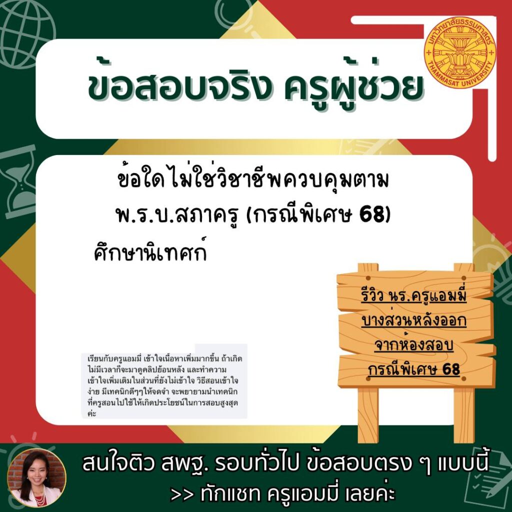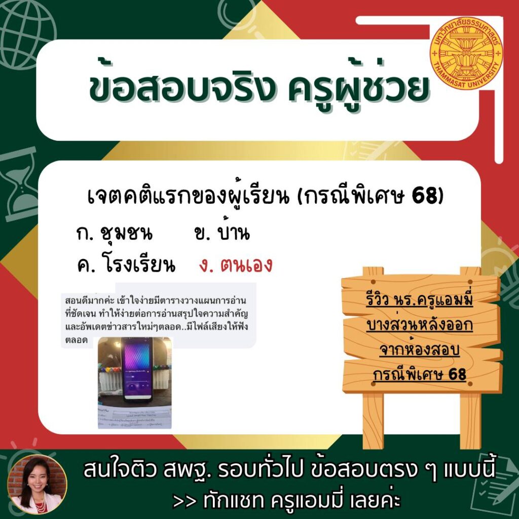 ข้อสอบจริง #สอบครูผู้ช่วย กรณีพิเศษ ปี 67 – 68 ใช้เป็นแนวทาง