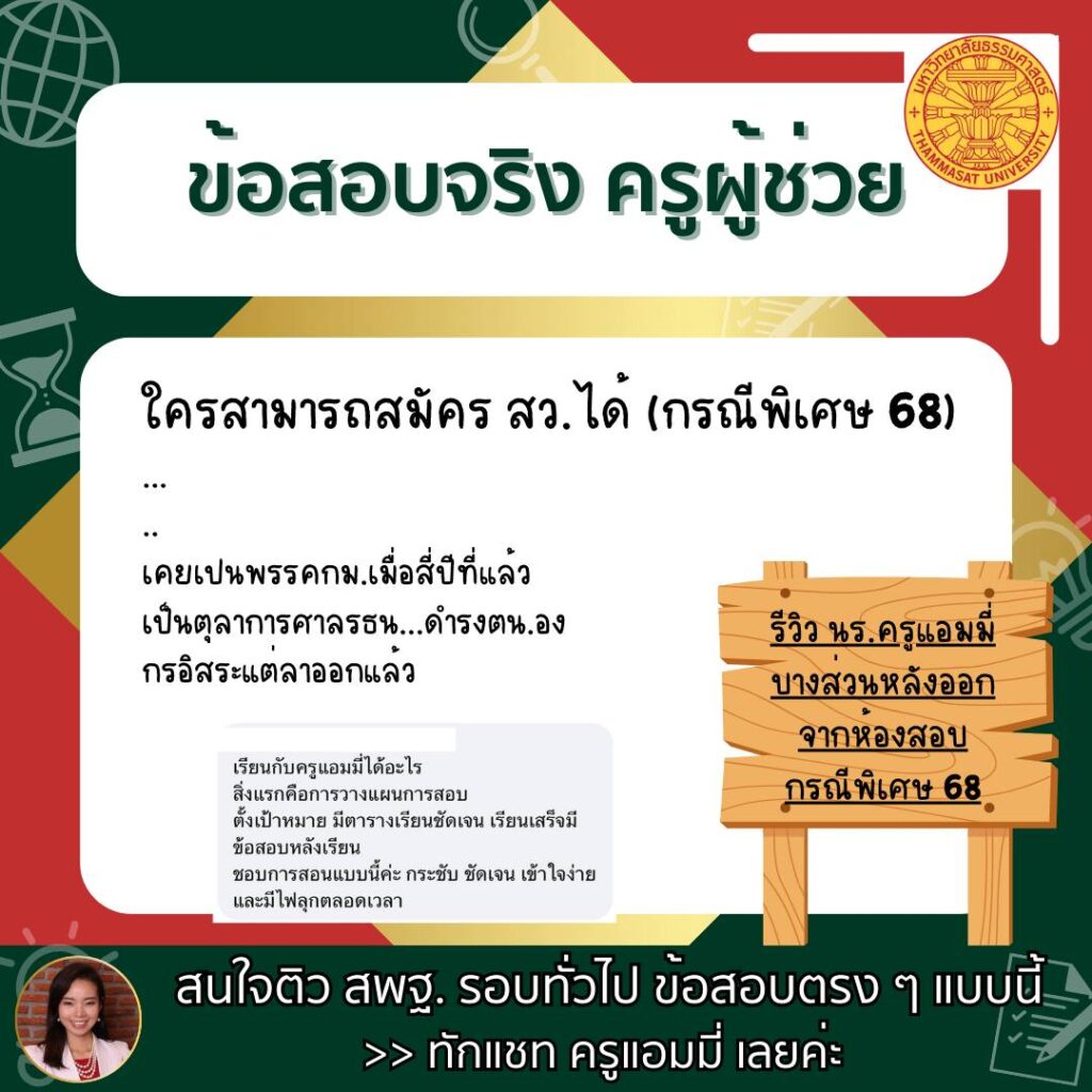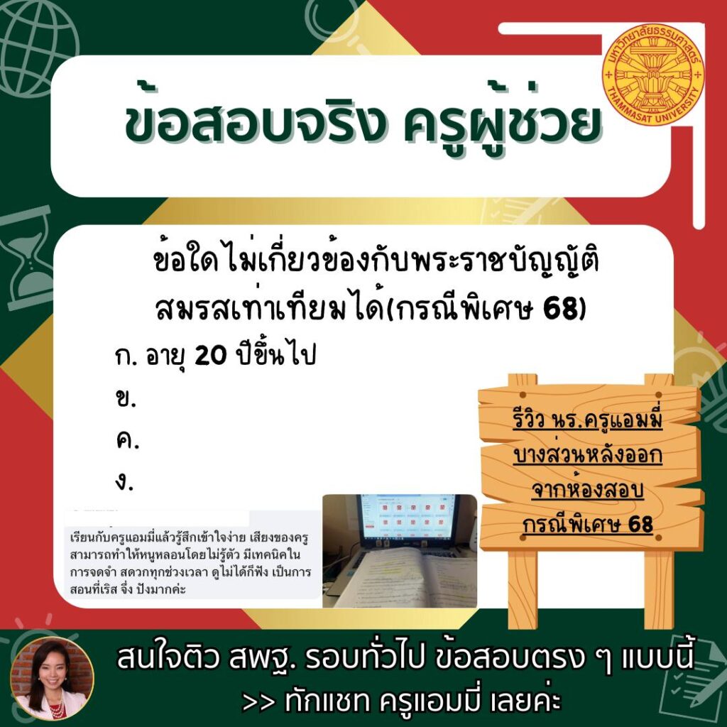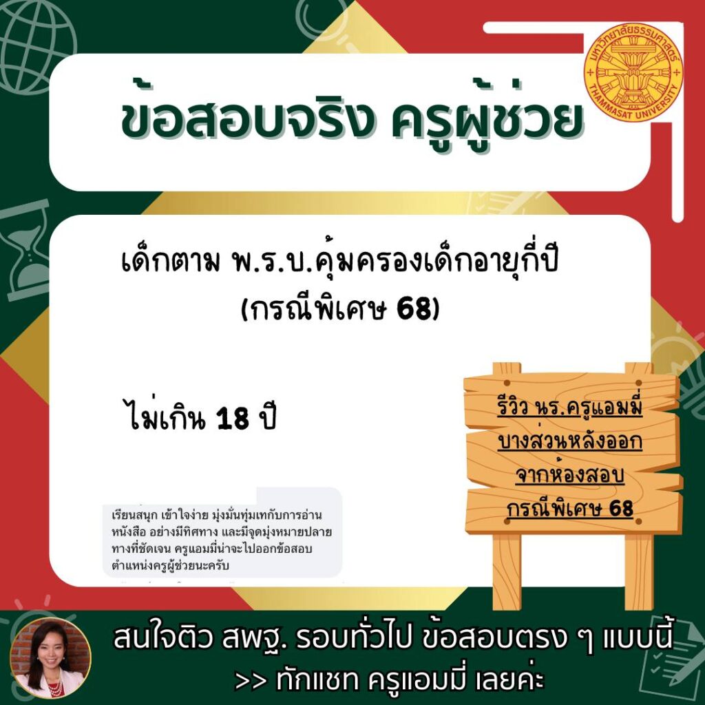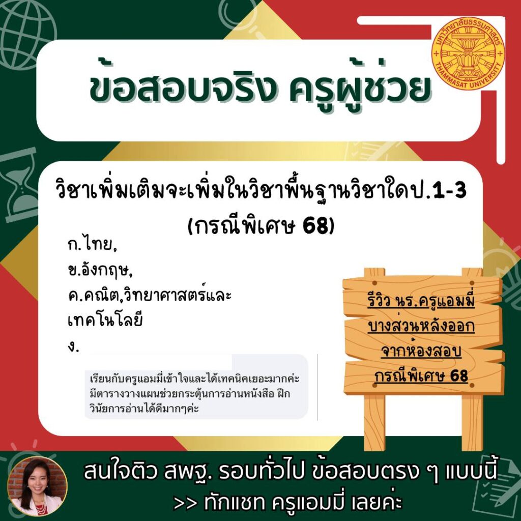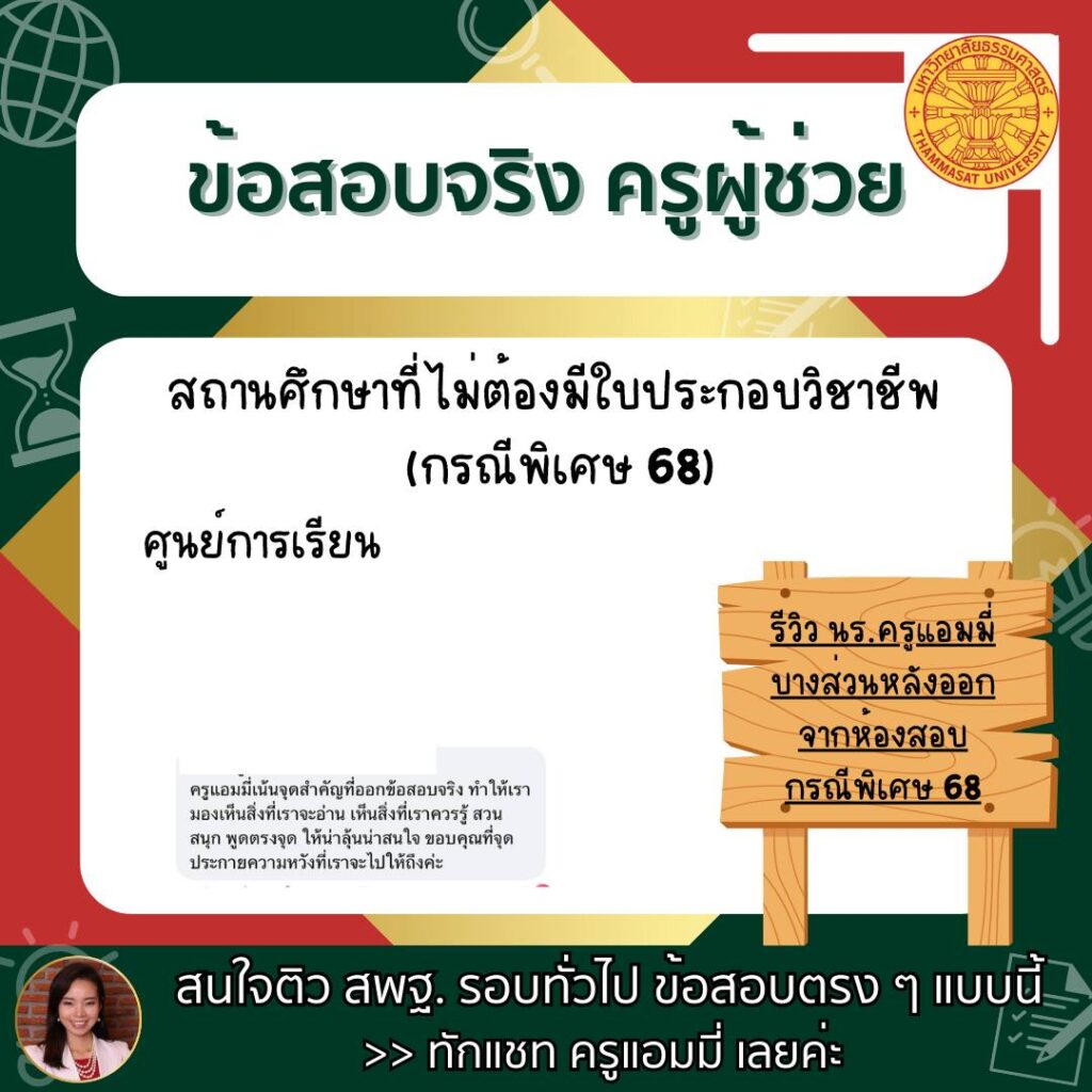 ข้อสอบจริง #สอบครูผู้ช่วย กรณีพิเศษ ปี 67 – 68 ใช้เป็นแนวทาง