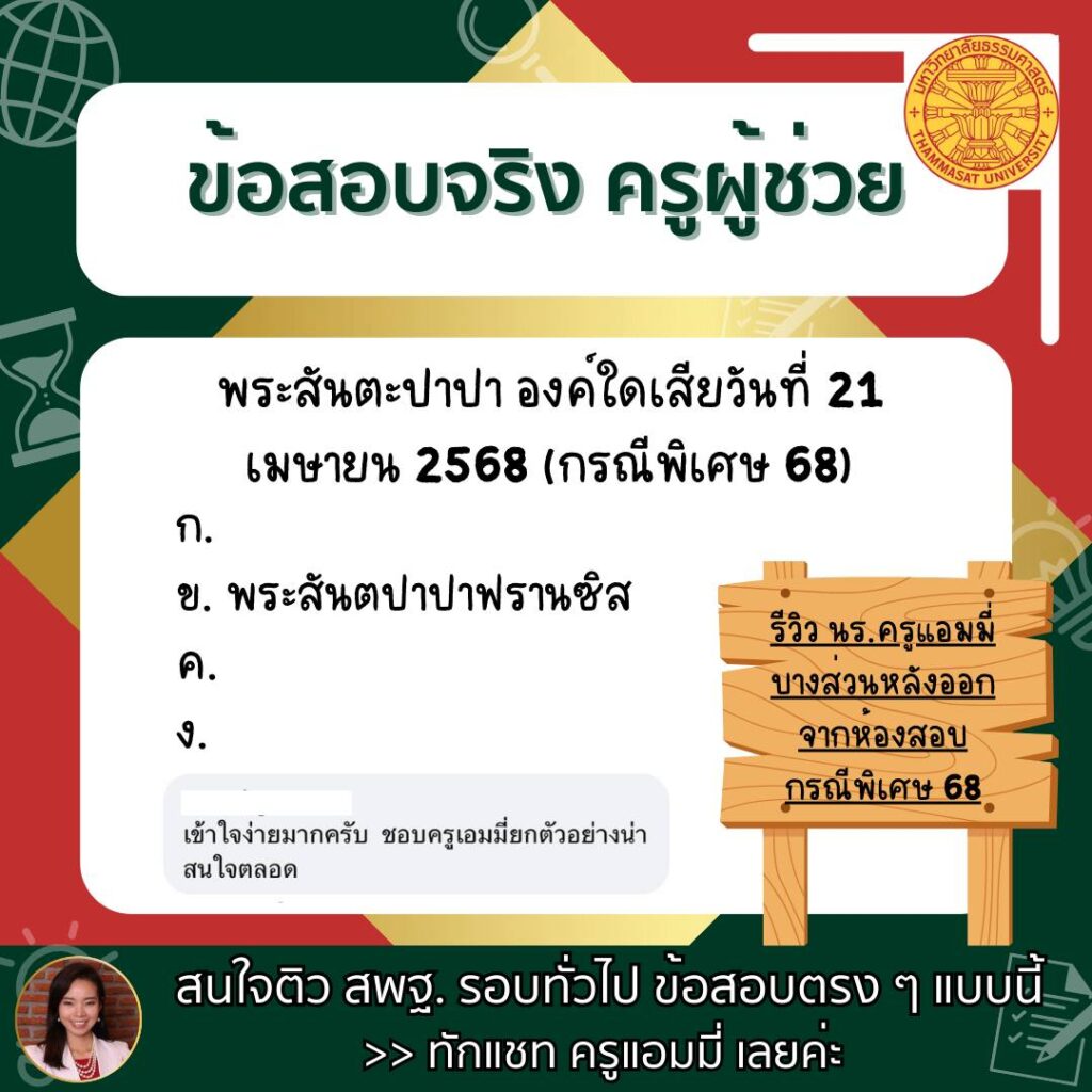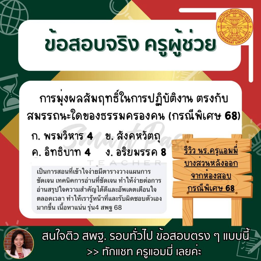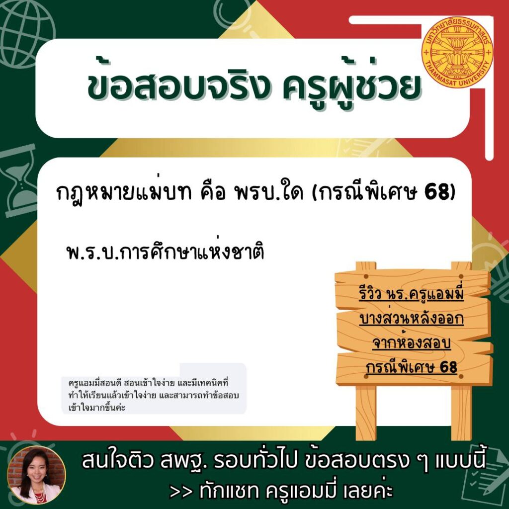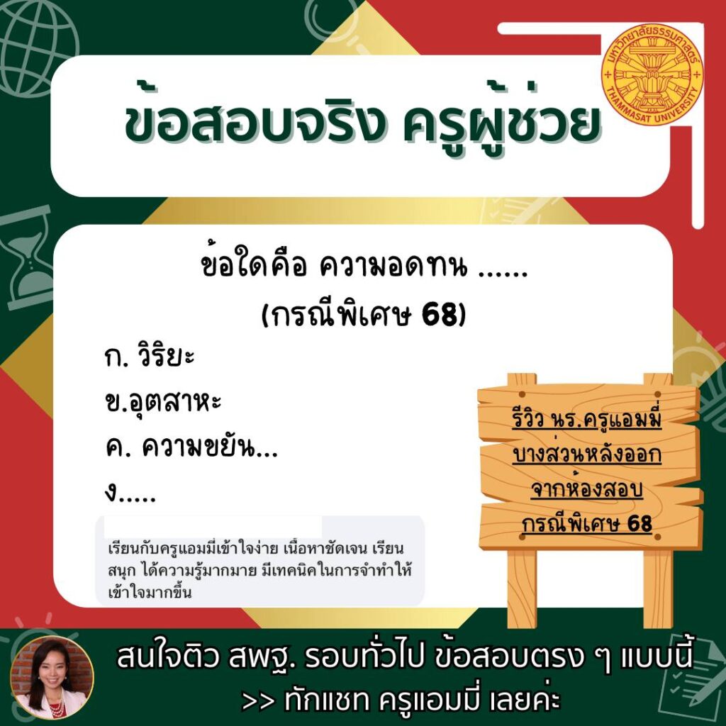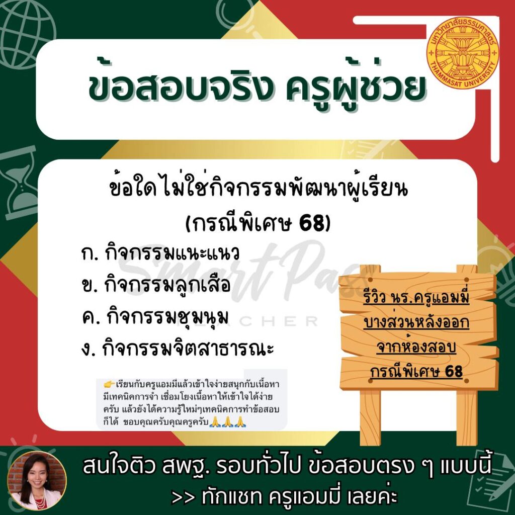 ข้อสอบจริง #สอบครูผู้ช่วย กรณีพิเศษ ปี 67 – 68 ใช้เป็นแนวทาง