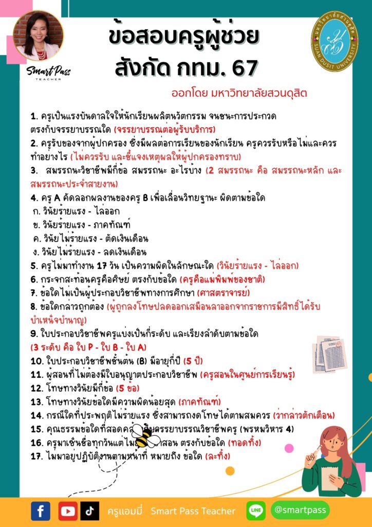 ข้อสอบจริง #สอบครูผู้ช่วย กทม. ปี 67