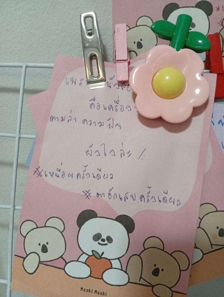 ที่มีเป็นหมื่น เป็นล้านคำในใจก่อน จนสองเดือนผ่านไป เริ่มปรับตัวกับโรงเรียนใหม่ได้